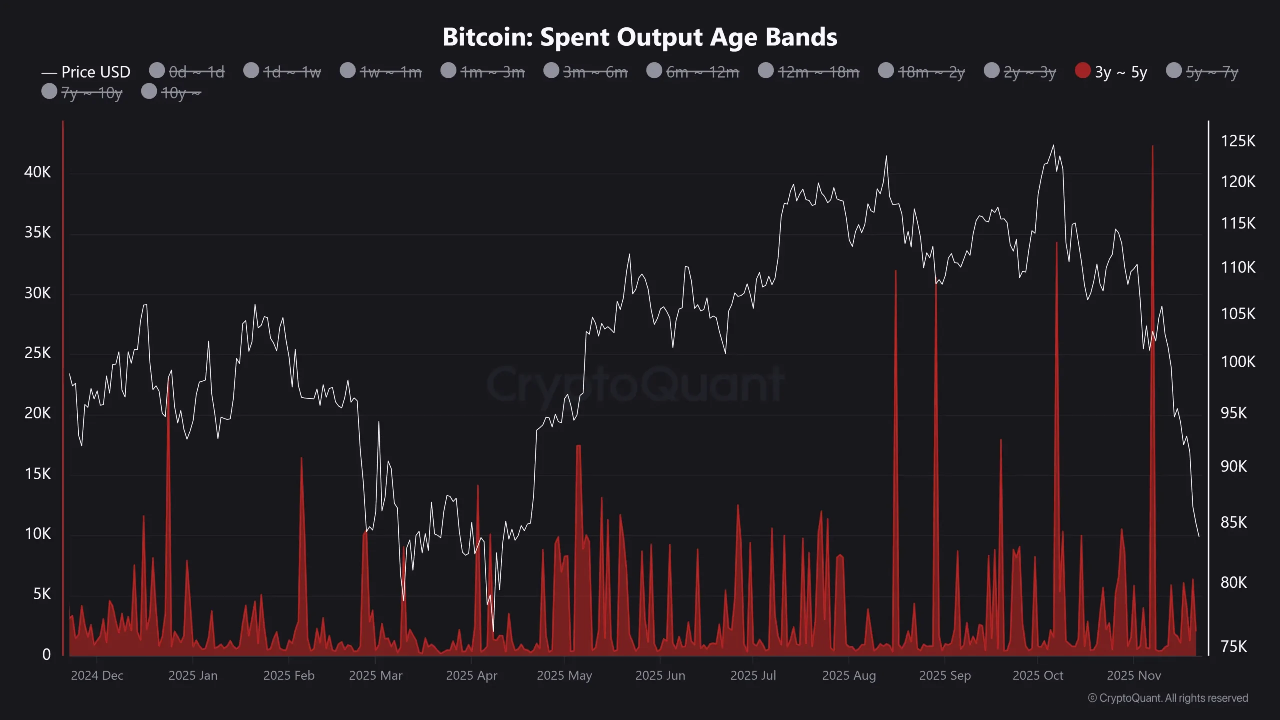 یکی از بهترین شاخص‌هایی که دقیقاً همین رفتار را به ما نشان می‌دهد، Spent Output Age Bands یا نوارهای سنی خروجی‌های مصرف‌شده است.